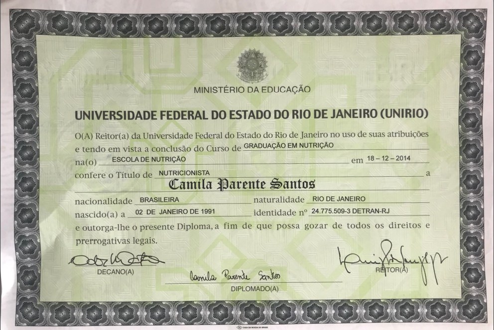 Universidade Federal Do Estado Do Rio de Janeiro, Nutricionista.